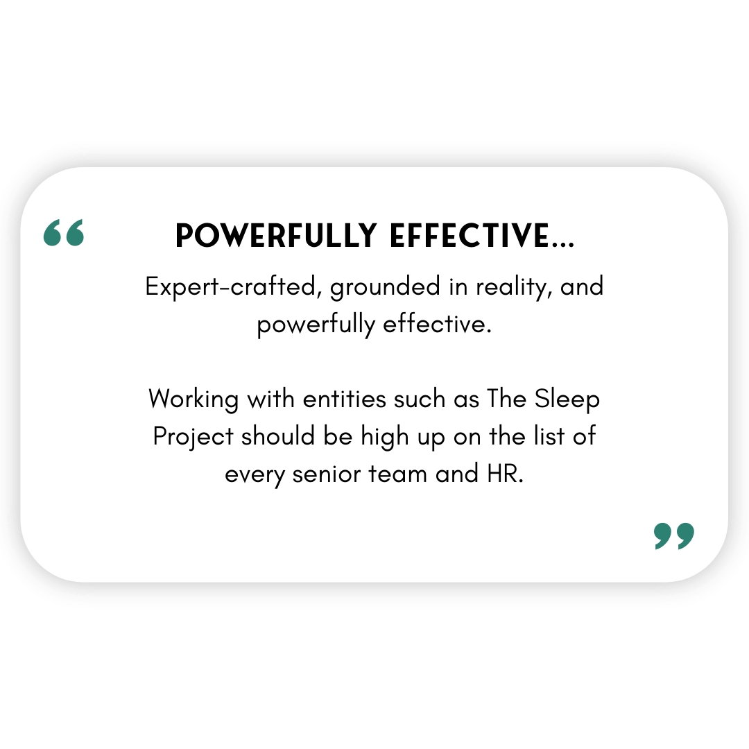 The challenge is that sleep problems are often hidden — people normalise fatigue, push through, or don’t connect how they’re feeling at work with what’s happening at night.
